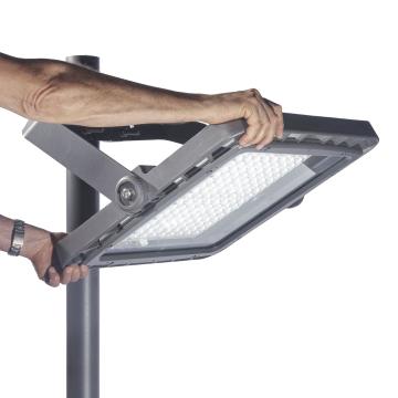 For environments requiring a higher lighting level, it is also possible to have three optical modules that can be tilted together. This version is designed for a post-top mounting on a Ø76-108mm pole.